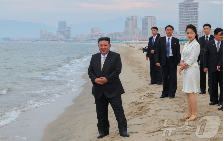 (평양 노동신문=뉴스1) = 지난달 26일 준공된 원산 갈마해안관광지구에 김정은 북한 노동당 총비서가 딸 주애와 함께 방문한 모습. [국내에서만 사용가능. 재배포 금지. DB 금지. For Use Only in the Republic of Korea. Redistribution Prohibited] rodongphoto@news1.kr