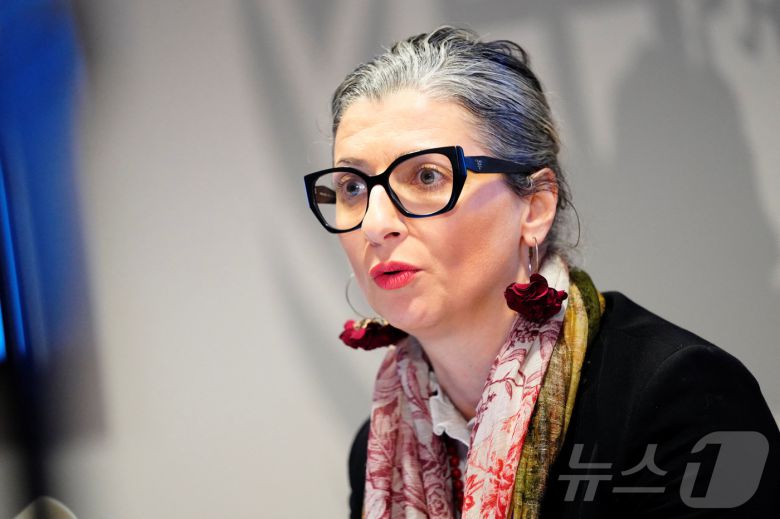 2월 5일(현지시간) 프란체스카 알바네제 유엔(UN) 팔레스타인 점령지 인권 상황 특별보고관이 덴마크 코펜하겐 UN시티에서 기자회견을 하고 있다. 2025.02.05. ⓒ 로이터=뉴스1 ⓒ News1 윤다정 기자
