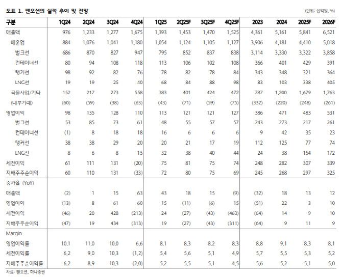 안도현 하나증권 연구원은 “2026년까지는 연평균 벌크선 선복량 증가율이 3%에 육박하기 때문에 단기간 업황 개선을 기대하기는 어렵다”면서도 “다각화된 포트폴리오 기반으로 안정적인 수익성을 구가하고 있고, 장기 계약된 LNG선이 실적 안정성에 무게추를 달아주고 있다”고 말했다.