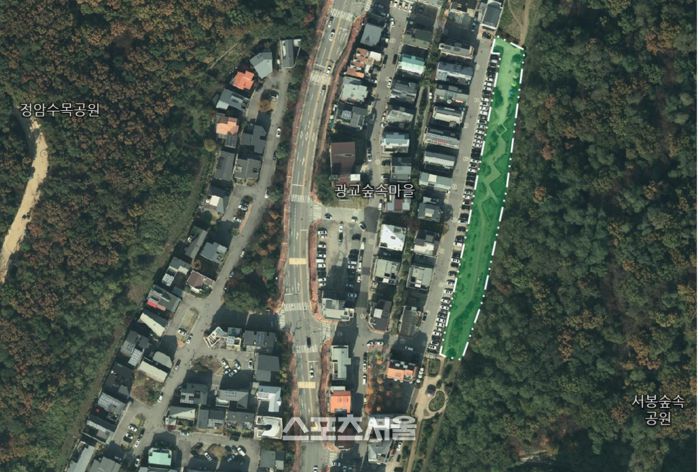 새단장 중인수지구 광교숲속마을 쉼터 위치도(초록 부분). 제공=용인시 |