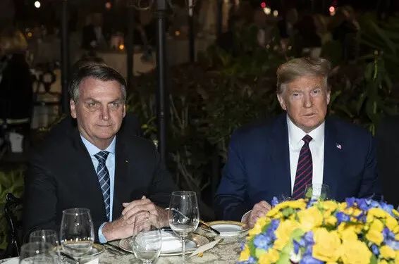 2020년 미국 플로리다 마러라고에서 도널드 트럼프 미국 대통령을 만난 자이르 보우소나루 당시 브라질 대통령. AP 연합뉴스 |