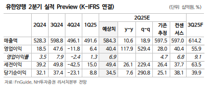 한 연구원은 그러면서 "1분기 영업이익률(OPM)이 바닥이었으나 2~3분기에 반등을 예상한다"며 "Lazcluze 마일스톤 유입(일본, 유럽) 및 고마진 해외사업(유한화학) 매출 집중 덕분이다. Lazcluze 2분기 글로벌 기술료 수익은 262억 원을 예상하며, 1분기 로열티 추정 매출 26억 원을 고려할 때 견조한 성장세가 기대된다"고 덧붙였다.