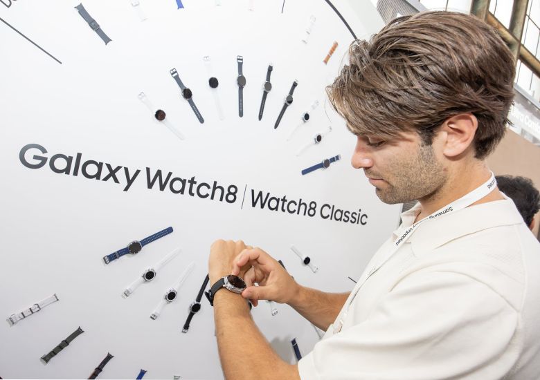 갤럭시 언팩 행사에서 방문자가 갤럭시 워치 8 체험하고 있다./삼성전자 |
