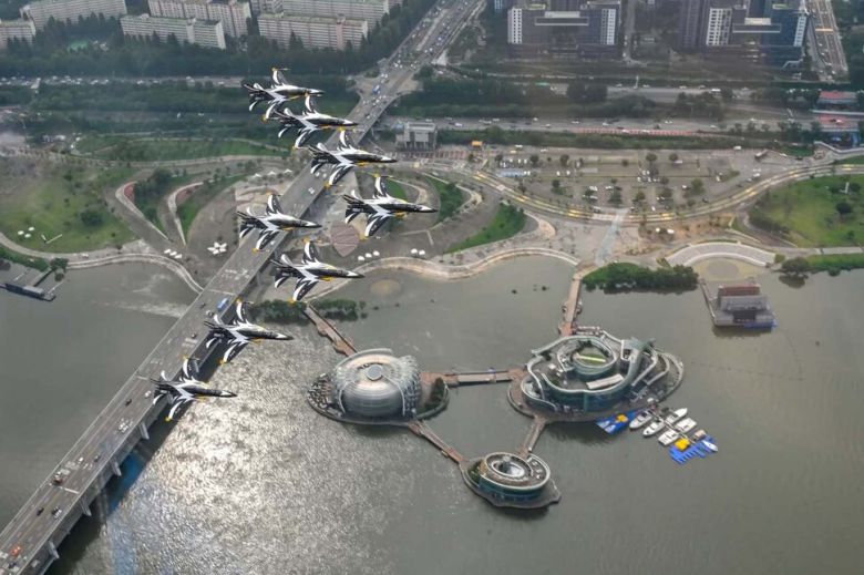 공군 특수비행팀 블랙이글스가 서울 한강에서 비행 연습을 하는 장면. 공군 블랙이글스 페이스북 |
