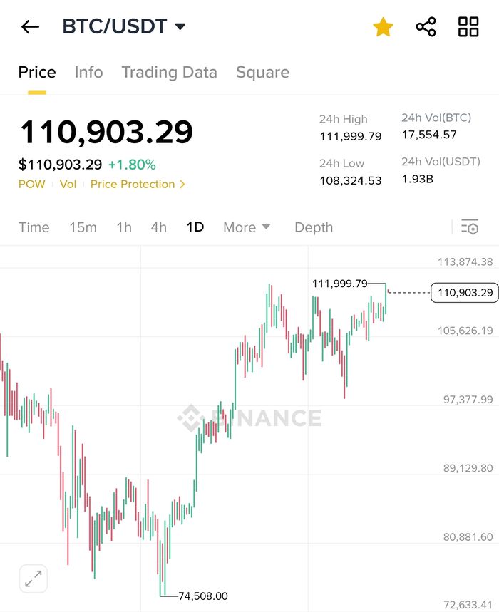 비트코인은 세계 최대 거래소 바이낸스에서 10일 4시 55분 11만1999달러까지 상승했다.