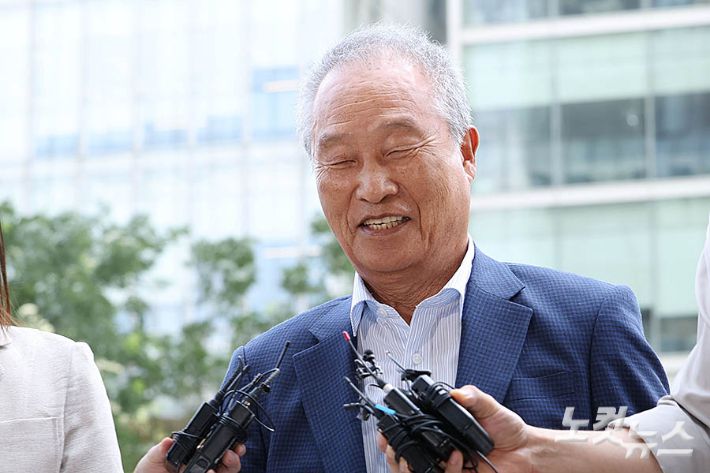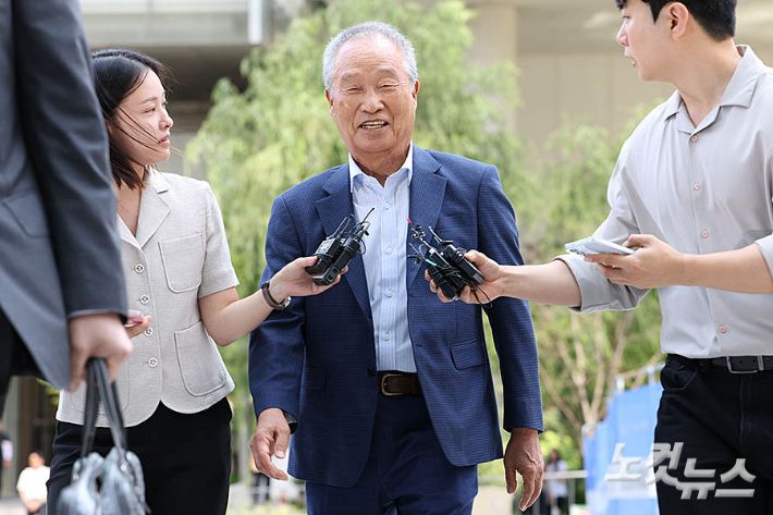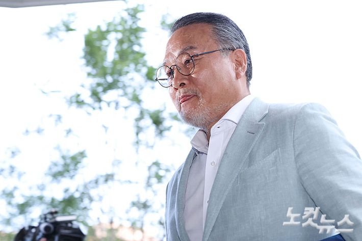 이일준 삼부토건 회장과 조성옥 전 삼부토건 회장이 10일 오전 서울 종로구 KT광화문빌딩 웨스트에 마련된 김건희 특검 사무실에 피의자 신분으로 출석하고 있다.