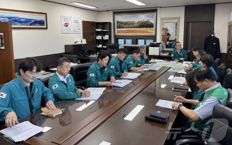 (공주=뉴스1) 이동원 기자 = 공주시는 지난 9일 시청 재난안전대책본부에서 송무경 부시장 주재로 강석광 자치안전국장을 비롯해 안전총괄과, 복지정책과, 경로장애인과, 건설과, 도로과, 건강관리과 등 관련 부서장들이 참석한 가운데 대책회의를 개최했다. 이날 회의에서 시는 폭염피해 발생 시 즉시 보고 및 일일상황보고를 철저히 하고, 시 누리집(홈페이지)과 소셜미디어(SNS)를 통한 국민행동요령 안내를 강화하기로 했다. (공주시 제공. 재판매 및 DB금지)2025.7.10/뉴스1