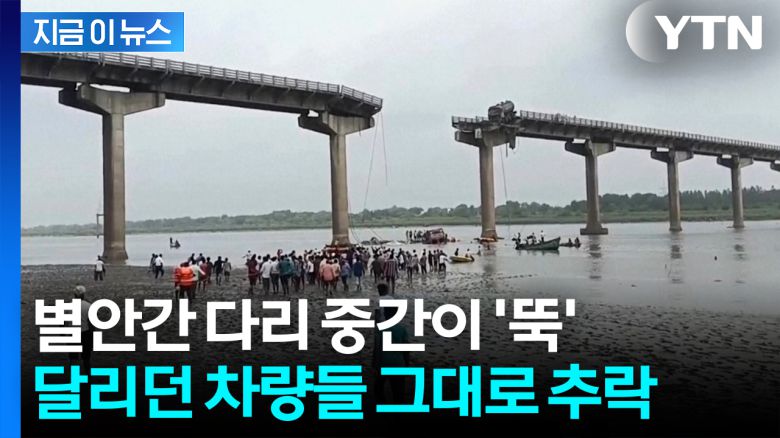 사고는 현지시각 9일 오전 구자라트주 아난드와 바도다라를 연결하는 다리 중 상판 일부가 붕괴하면서 발생했습니다.