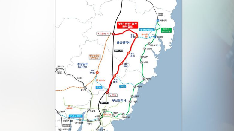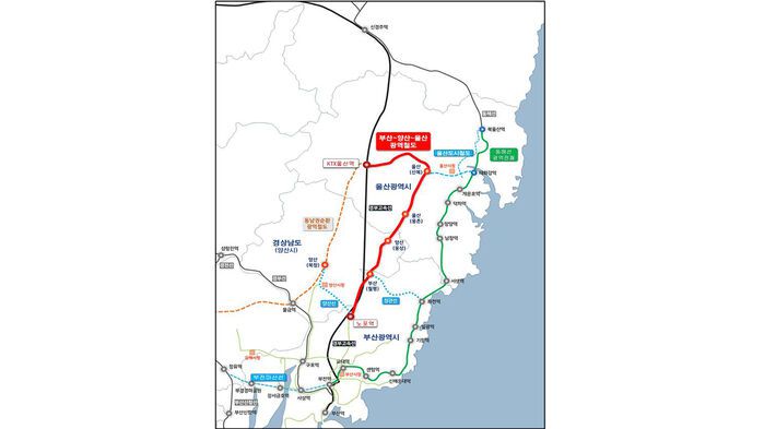 ▲ 부산∼양산∼울산 광역철도(빨간색 노선)