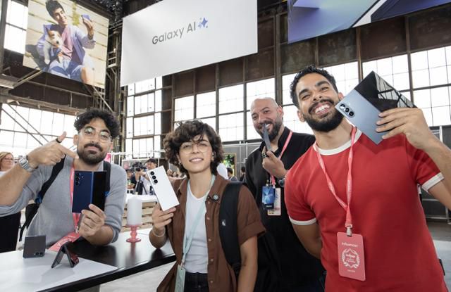 9일 미국 뉴욕 브루클린 듀갈 그린하우스에서 열린 하반기 '갤럭시 언팩 2025'에서 관람객들이 갤럭시 Z 폴드7을 체험하고 있다. 삼성전자 제공