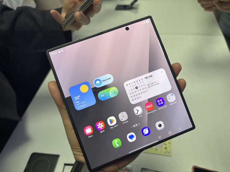 먼저 갤럭시Z 폴드7를 체험해봤다. 역대 폴드 시리즈 중 가장 얇은 만큼, 화면이 커졌음에도 한 손으로 들고 사용하기에 부담이 없었다.