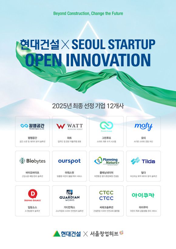 현대건설은 오는 9월 킨텍스에서 열리는 '2025년 한국건설·안전박람회'에 오픈이노베이션 공동관을 운영할 예정이다. 선발 스타트업을 외부에 소개하고 그동안의 협업 성과를 공유할 계획이다.