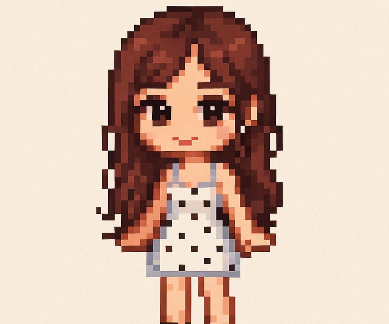 "유명 픽셀 아트 스타일을 참고해서 캐릭터의 체형, 얼굴, 표정, 의상, 헤어스타일을 따라 그려줘. 첨부한 사진 속 인물의 헤어스타일, 의상, 액세서리를 반영해서 전신이 보이도록 캐릭터 일러스트를 그려줘. 배경은 흰색으로 해줘"라는 프롬프트를 입력하면 된다.