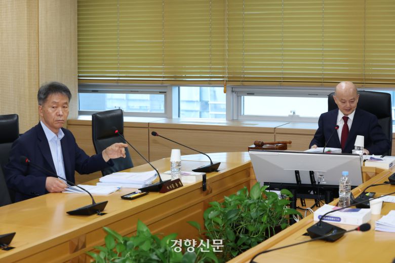 안창호 국가인권위원장(오른쪽)과 김용원 인권위 상임위원이 지난달 26일 서울 중구 인권위에서 열린 상임위원회에 참석해 있다. 정효진 기자 |