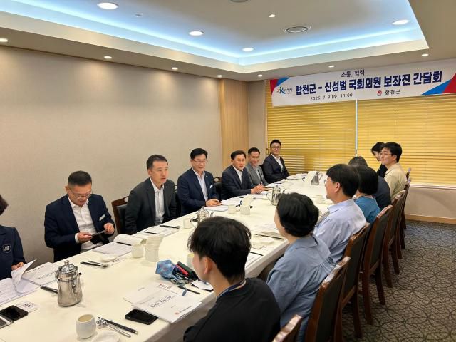 합천군은 지난 9일 서울 국회 인근 식당에서 ‘신성범 국회의원 보좌진과의 정책 간담회’를 개최하고, 군정 주요 현안 사업에 대한 설명과 함께 국비 확보를 위한 협력을 요청했다고 10일 밝혔다.