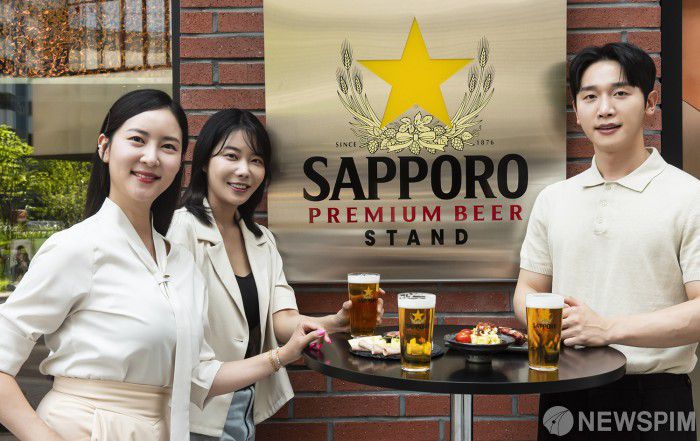 [서울=뉴스핌] 삿포로 프리미엄 맥주만을 즐길 수 있는 ‘삿포로 프리미엄 비어스탠드’ 매장이 12일 서울 성수동에서 오픈한다. 10일 삿포로 프리미엄 비어스탠드 매장에서 모델들이 삿포로 프리미엄 맥주를 들고 포즈를 취하고 있다.삿포로맥주 최초의 해외 매장인 ‘삿포로 프리미엄 비어스탠드’는 도쿄 핫플레이스인 긴자의 ‘삿포로 생맥주 블랙 라벨 더 바’를 그대로 재현한 곳으로, 따르는 방식에 따라 맛이 다른 2가지 방식의 삿포로 생맥주를 체험할 수 있다. [사진=삿포로맥주] 2025.07.10 photo@newspim.com