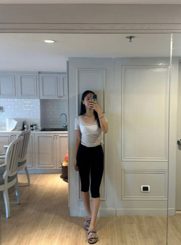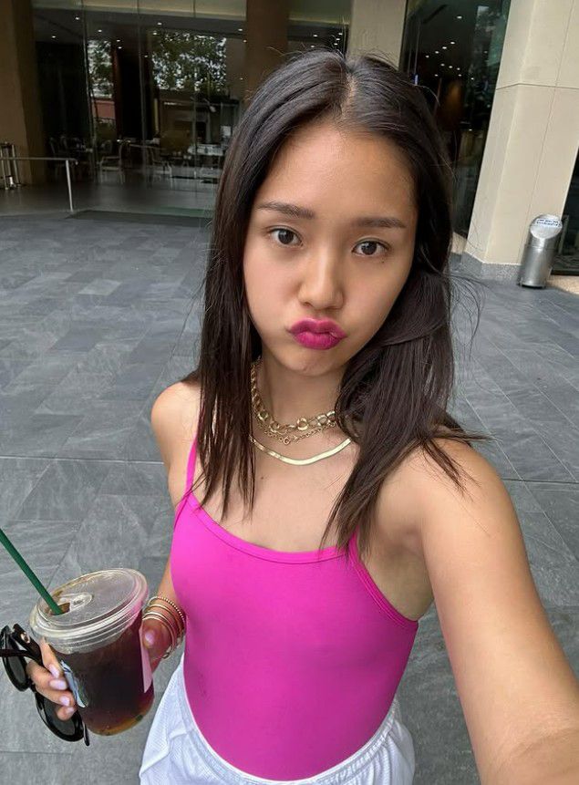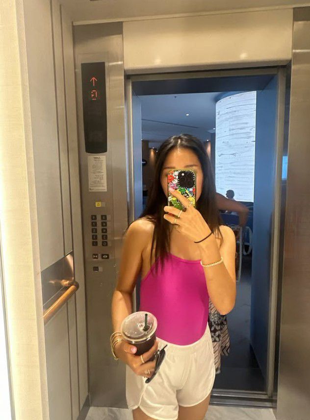 수영복 스타일 역시 눈에 띈다. 화려한 패턴보다는 비비드한 단색과 화이트 쇼츠로 시선을 모았고, 심플한 체인을 레이어링한 액세서리로 개성을 더했다.