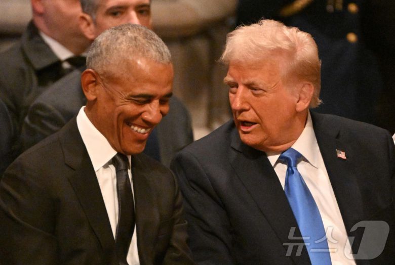 (서울=뉴스1) 윤다정 기자 = 지난 1월 9일(현지시간) 미국 워싱턴DC 워싱턴국립대성당에서 열린 고(故) 지미 카터 전 미국 대통령의 국장(國葬)에서 묘한 장면이 포착됐다. 버락 오바마 전 미국 대통령과 당시 당선인 신분이던 도널드 트럼프 미국 대통령이 화기애애하게 이야기를 나누는 모습이었다.