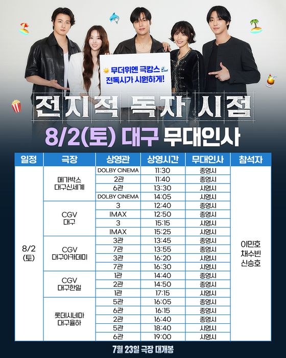 2일 대전 무대인사는 안효섭, 나나, 권은성, 김병우 감독이 CGV 대전, 롯데시네마 대전관저, 롯데시네마 대전(백화점), CGV 대전터미널, 메가박스 대전신세계 아트앤사이언스를 차례대로 방문해 '전지적 독자 시점'을 선택해 준 관객들에게 감사 인사를 전한다.