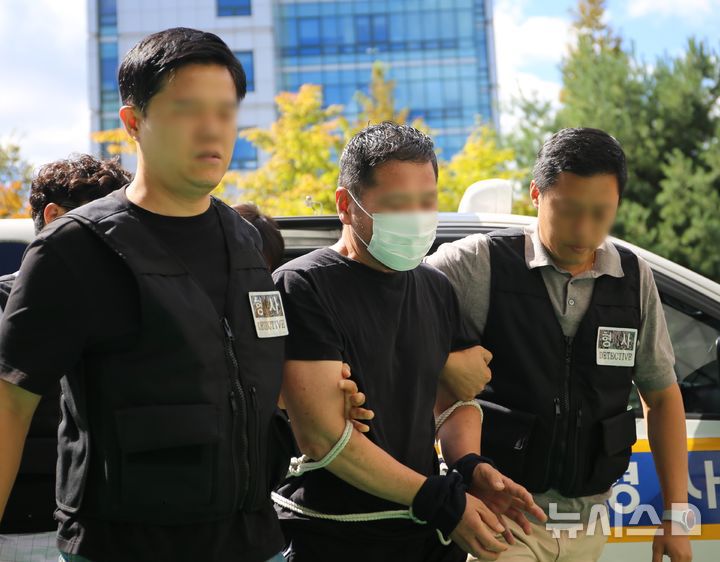 [청주=뉴시스] 서주영 기자 = 지난 21일 오전 충북 청주시 남주동의 한 4층짜리 여관 1층 출입구에 있던 단열재에 불을 질러 투숙객 3명을 숨지게 한 혐의를 받는 김모(48)씨가 23일 청주지방법원에서 열린 구속 전 피의자 심문(영장실질심사)에 출석하고 있다. 2024.09.23. juyeong@newsis.com |