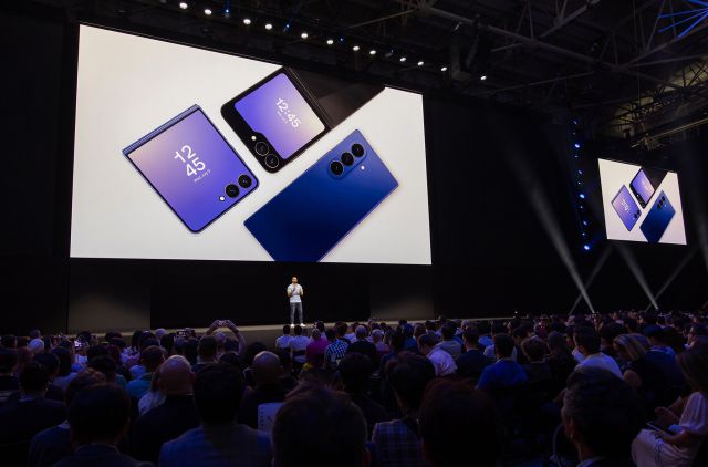 현장의 분위기는 고조됐습니다. 전면에 등장한 ‘갤럭시Z 플립7’은 삼성의 폴더블 미학이 정점을 찍은 결과물이라 자신했기 때문이죠. 힌지 구조를 다시 설계하고 디스플레이 패널을 얇게 만든 덕분에 삼성은 자사의 '가장 얇은 플립폰'이라는 수식어를 자신 있게 내걸었습니다. 접었을 때는 단단하고, 펼쳤을 때는 6.9인치 21:9 비율의 바타입 스마트폰으로 전환됩니다.