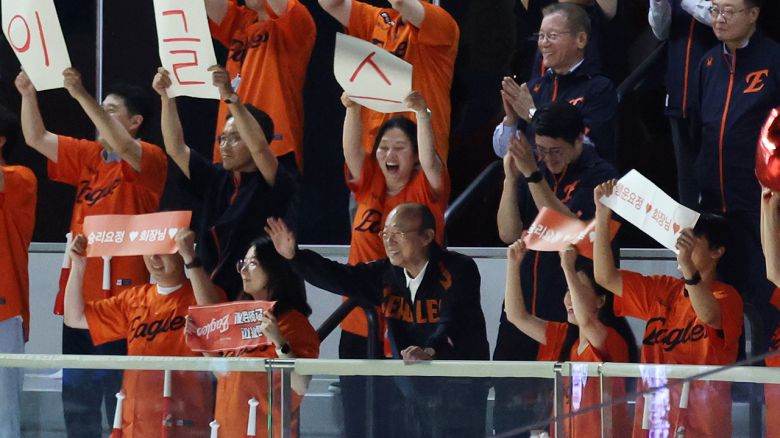 ▲ 김승연 한화그룹 회장을 비롯한 임직원이 지난 3일 대전 한화생명볼파크에서 열린 2025 신한 SOL 뱅크 KBO리그 NC 다이노스와 한화 이글스의 경기를 관람하고 있다.