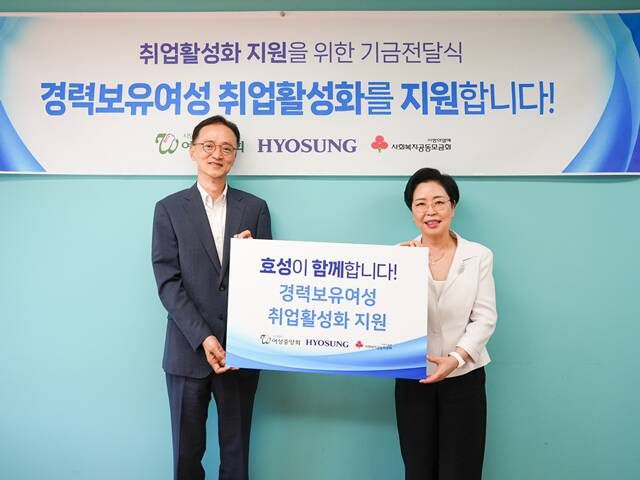 [더팩트ㅣ이성락 기자] 효성그룹은 10일 서울 종로구 종로여성인력개발센터에서 경력 보유 여성 취업 활성화를 위해 지원금 7000만원을 여성중앙회에 전달했다고 밝혔다.