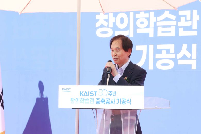이광형 한국과학기술원(KAIST) 총장이 개교 50주년 기념 ‘기부 랜드마크’ 창의학습관 증축 기공식에서 인사하고 있다./KAIST |