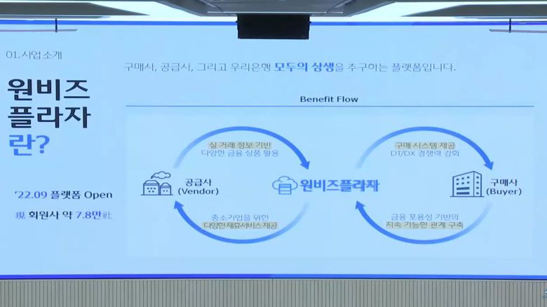 우리은행은 기업 전용 플랫폼 '원비즈플라자' 가입 회사를 올해 10만 개까지 확대하겠다는 계획입니다.