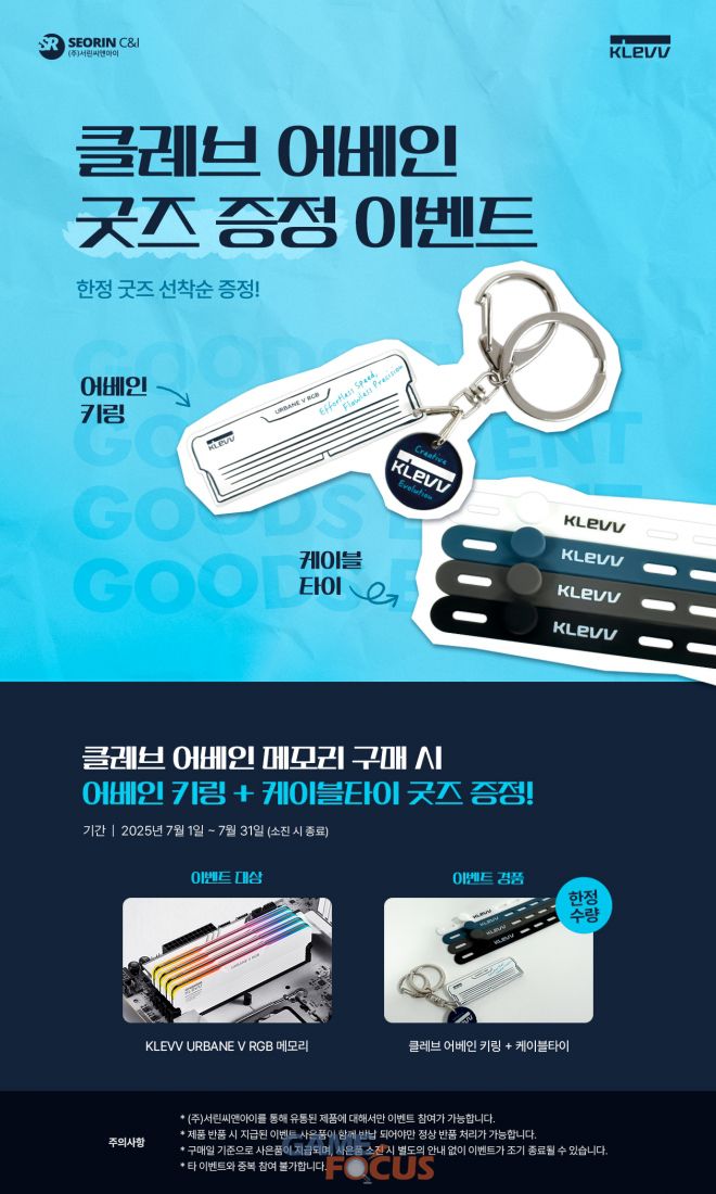 서린씨앤아이(대표: 전덕규)가 에센코어(ESSENCORE Limited)의 클레브(KLEVV) 고성능 메모리 어베인(URBANE) V RGB 구매자 대상 행사를 진행한다.