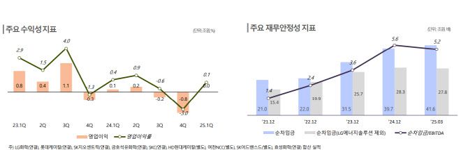 석유화학업체 주요 수익성 지표 및 재무안정성 지표.(표=한국신용평가)