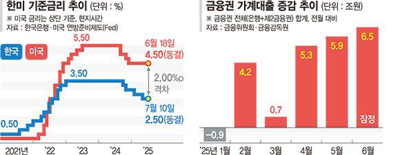 향후 서울의 주간 아파트 가격 상승세가 8월까지 눈에 띄게 둔화될 경우 한은의 금리인하 시점은 다음 달이 될 가능성이 크다. 소비·수출 개선세에 추경 효과까지 유입된다 해도 올해 성장률이 1% 안팎에 그치고, 실제 국내총생산(GDP)과 잠재 GDP의 격차인 GDP 갭도 상당히 커지는 등 기준금리 추가 인하 필요성이 확대됐기 때문이다.