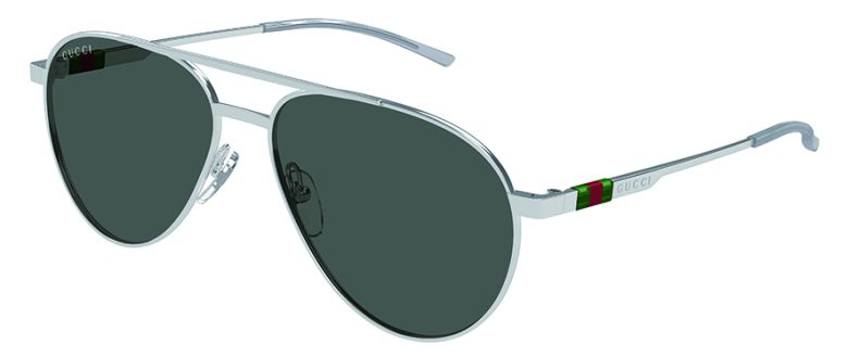 구찌의 테니스 캠페인 라인인 'GG1679S' 모델은 메탈 소재의 더블 브릿지 파일럿 선글라스다. 템플에 레이저로 각인된 구찌 로고와 웹 스트라이프 디테일이 브랜드의 아이덴티티를 더한다.