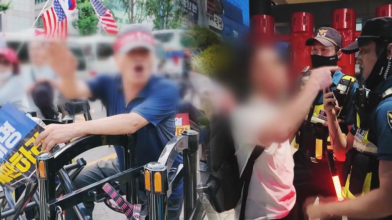 ['윤 어게인' 집회 참가자 : 꺼져, 이 개XX야.]