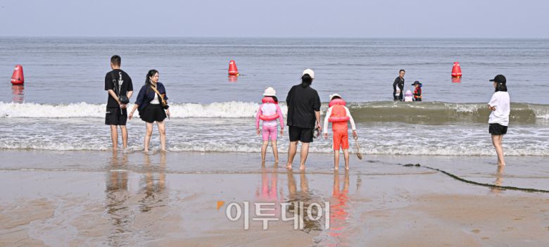 전국에 폭염특보가 발효 중인 6일 인천 중구 을왕리해수욕장에서 시민들이 물놀이를 하며 더위를 식히고 있다. 조현호 기자 hyunho@ |