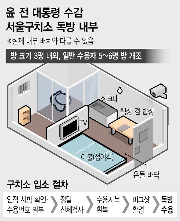 ‘2평대 독방’ 윤석열…선풍기 시간당 50분, 하루 식비 5201원