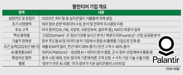 "무슨 일을 하는지 모르겠다"는 평가를 받던 팔란티어는 현재 최고의 인공지능(AI) 기업 중 하나다. 그 뒤에는 미국 정부와 세계 최대의 군비가 있다. 미국 언론과 투자자들 사이에서 '미국 정부가 만든 인공지능(AI) 괴물' '민간이 아닌 정부가 키운 실리콘밸리 스타트업'이라는 평가가 나오는 이유다.