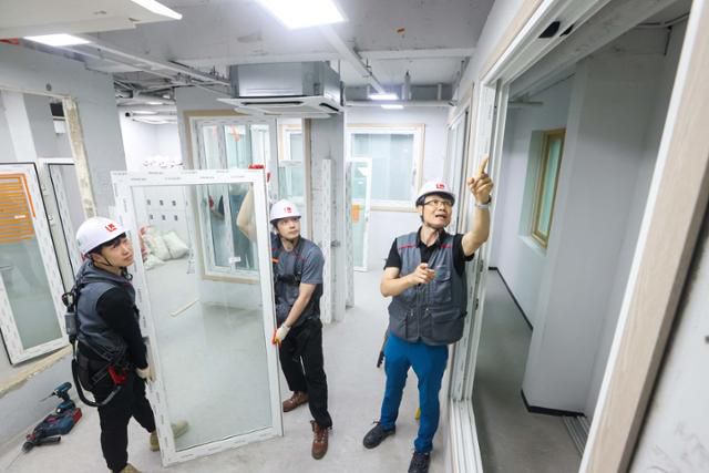 경기 평택시에 위치한 'LX Z:IN 인테리어 아카데미'에서 진행되고 있는 창호 시공 실습 강의. LX하우시스 제공