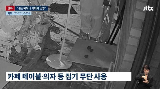 영상에는 이들이 카페의 테이블과 의자를 마음대로 옮기는 장면, 심지어 파라솔을 접어서 가져가기 위해 의자를 밟고 올라서는 모습까지 고스란히 담겼다. 긴 전깃줄이 설치되고 잠시 뒤에는 조명 등 온갖 촬영 장비들이 나타났다. A씨는 이들이 특정 드라마 촬영팀이었음을 뒤늦게 알게 됐다.
