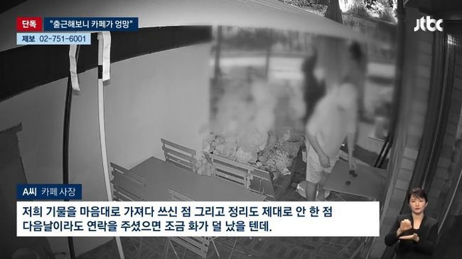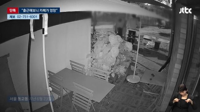 보도에 따르면 최근 한 카페 사장 A씨는 영업을 마감하고 돌아간 뒤, 다음 날 가게를 열자마자 내부가 엉망으로 변해있던 것을 발견하고 이상함을 감지했다. CCTV 영상을 돌려본 결과 '출입금지' 팻말이 버젓이 놓여 있음에도 불구하고 한밤중 불특정 다수의 사람들이 카페 테라스로 들어서는 모습이 포착됐다.
