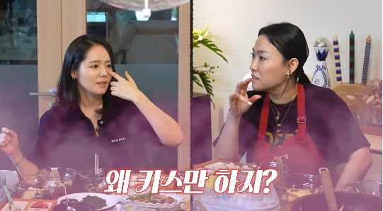 질문은 장난이었고, 반응은 즉각적이었다. 한가인의 얼굴에 웃음이 번지더니 곧 손사래가 이어졌다. 그건 분명한 거부의 몸짓이었다.