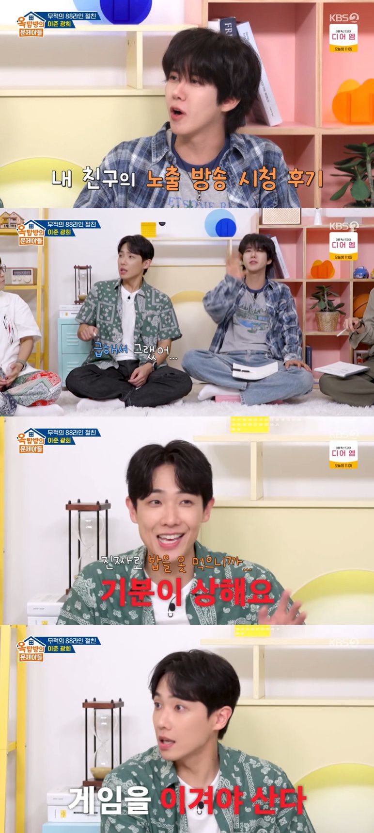 이준은 "그거는 급했다"면서 "왜냐면 '1박 2일' 하다 보면 게임에 빈정 상하면 안 되는데, 진짜로 밥을 못 먹으니까 빈정이 상하더라. 예능이 아니더라"라며 상한 마음에 벗게 됐음을 밝혔다.