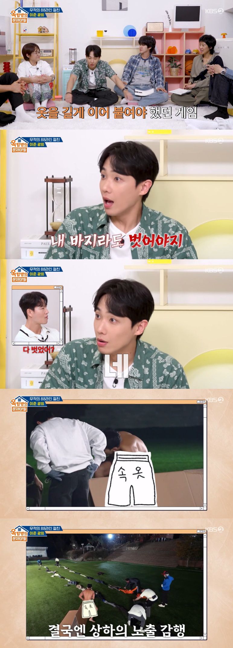 송은이가 "왜 이렇게 노출을 했냐"고 묻자 이준은 "무조건 게임에서 이겨야 하니까"라며 웃을 길게 이어 붙여야 이기는 게임에서 승리하기 위함이었다고 털어놨다.