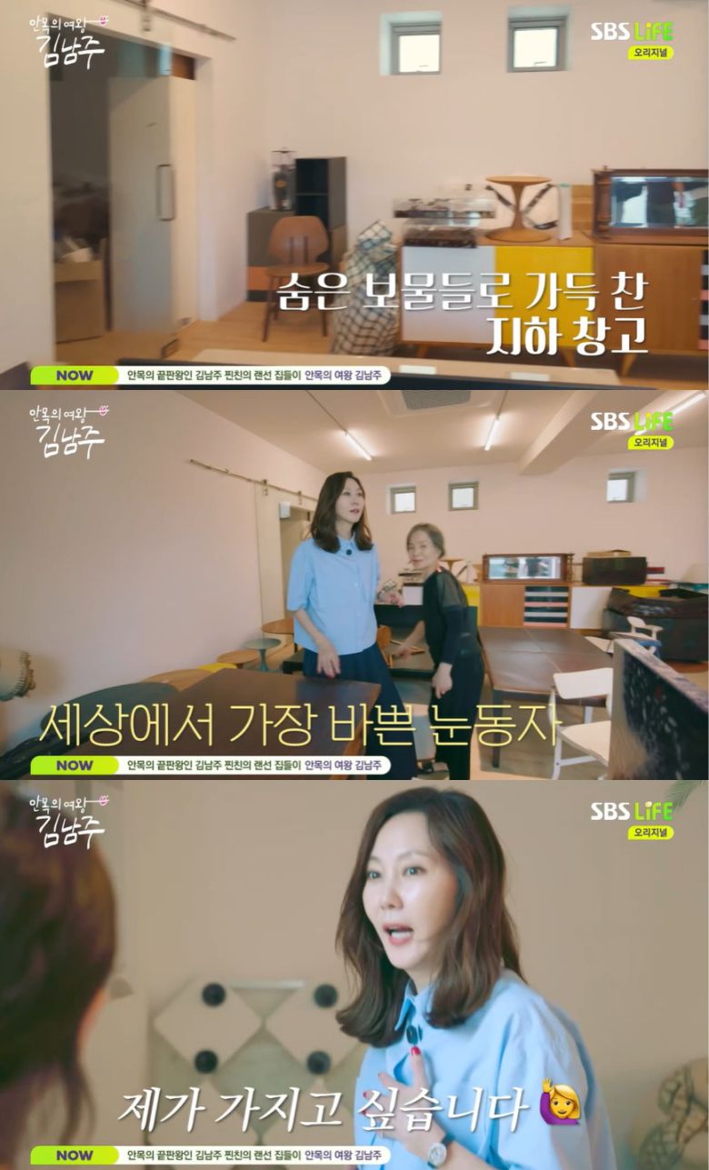이날 이시현 대표 자택의 지하 창고로 향한 김남주는 "나는 여기가 젤 재밌다. 여기 예쁜 게 또 있다"며 들뜬 모습을 보였다.
