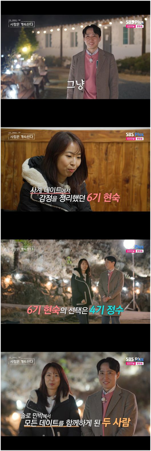 10일 방영한 ENA, SBS Plus 예능 ‘나는 SOLO, 그 후 사랑은 계속된다’(이하 ‘나솔사계’)에서는 여성 선택의 마지막 데이트가 시작되었다. 지난주 방영분에서 마지막 슈퍼 데이트 때 6기 현숙은 4기 정수에게 남성으로 느껴지지 않는다고 거절했다.