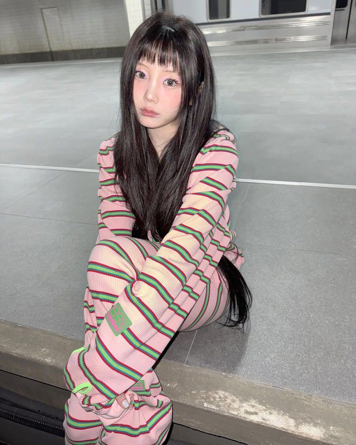 지난 9일 아일릿 공식 SNS에 원희의 새로운 사진이 공개됐다. 사진에는 뮤직비디오 촬영 중 입었던 스트라이프 패턴의 핑크색 의상을 입고 있는 모습이 담겨 있다.