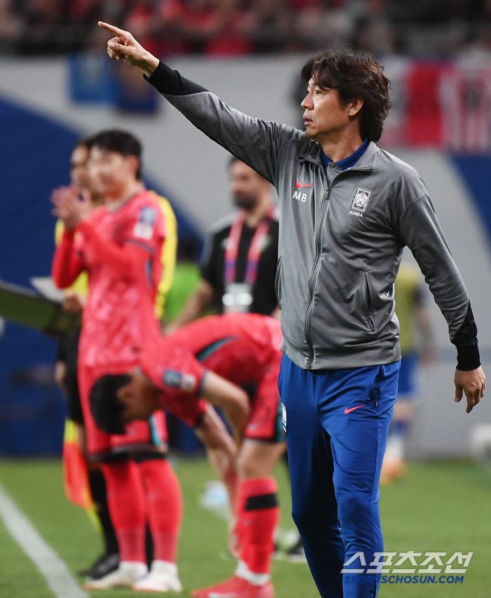 10일 서울월드컵경기장에서 열린 대한민국과 쿠웨이트의 2026년 북중미월드컵 아시아 3차예선 B조 최종전. 손흥민이 후반전 교체 멤버로 출전하는 가운데 홍명보 감독이 작전 지시를 하고 있다. 상암=정재근 기자 cjg@sportschosun.com/2025.6.10/