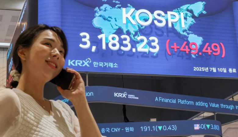 10일 오후 서울 여의도 한국거래소 전광판에 코스피가 표시되고 있다. 이날 코스피는 전 거래일보다 49.49포인트(1.58%) 오른 3183.23에 마감했다./박성원 기자 |