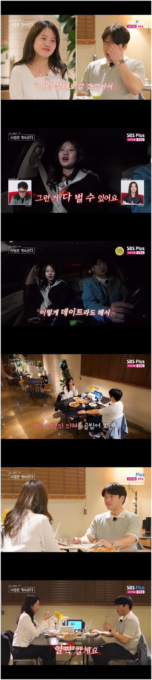 이에 4기 정수는 “현숙 님이 저더러 남자로서 호감을 아직 못 느꼈다고 했다. 그게 다일 줄 알았다. ‘아직’인 줄 알았다. 이 안의 다른 사람에게도 호감을 못 느끼는 줄 알았다. 그것까지 생각을 못 했다. 두 분이 관심 있을지라도, 나가서 연락하면 안 되는 거였나?”라며 울었다.
