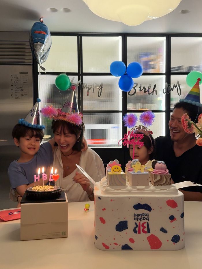 사진 속에는 양미라의 생일을 맞아 파티 중인 가족의 모습이 담겨있다. 이어 나란히 고깔 모자를 나눠 쓰고 생일 축하 노래를 부르는 가족의 모습이 사랑스럽다.